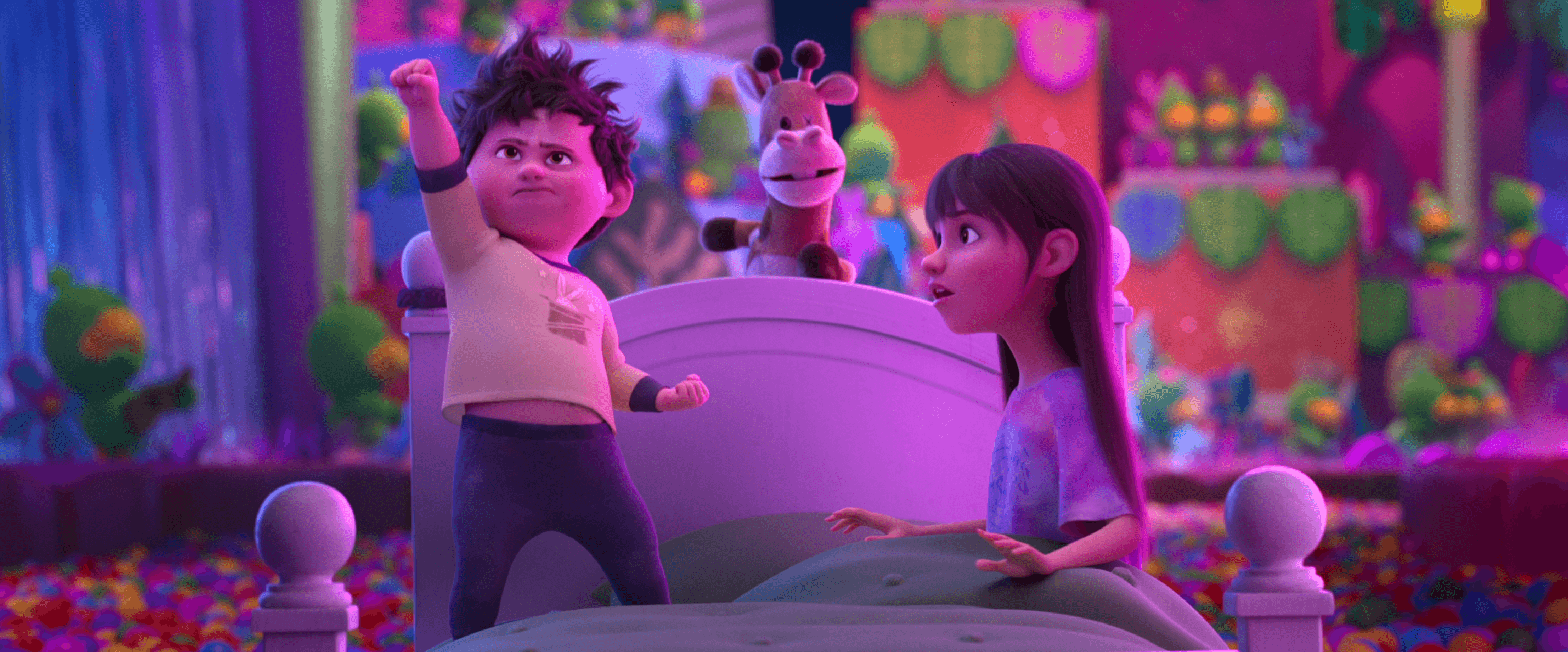 In Your Dreams tells the story of a mixed-Asian family from the perspective of two siblings: tween perfectionist Stevie (Jolie Hoang-Rappaport) and her younger, mischievously sloppy brother, Elliot (Elias Janssen). As Stevie watches an emotional rift growing between her once-harmonious parents (Simu Liu and Cristin Milioti), she begins to fear the worst, believing it’s her job to fix their marriage and keep their family together. In her most desperate moment, she and Elliot stumble across the mysterious book of The Sandman (Omid Djalili), and read about a way for him to grant wishes through their dreams. So they embark on a surreal journey through their dreams to find The Sandman so he can keep everyone together.